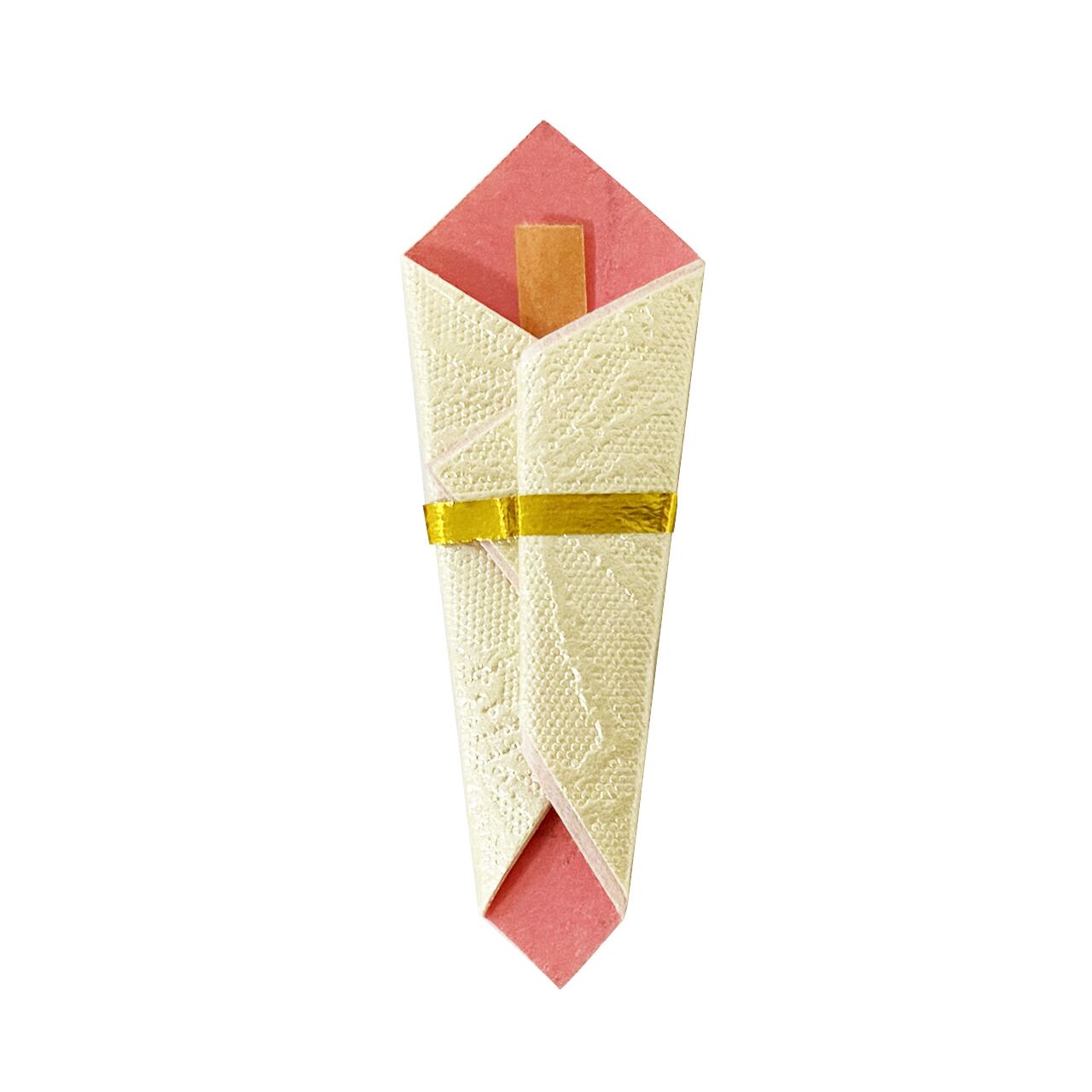 弊社は、紙産業が盛んな愛媛県四国中央市において、創業以来50年にわたり、折熨斗を生産してまいりました。ご祝儀袋やポチ袋、のし紙などに、両面テープなどで張り付けてご利用ください。