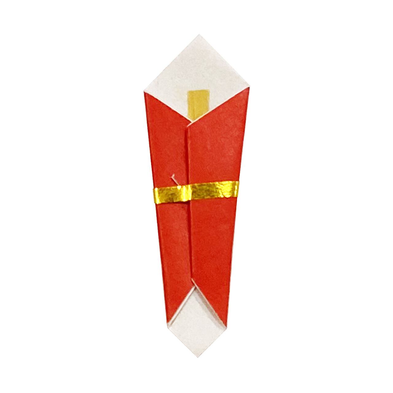 熨斗鮑は大変希少なので、形式化、大衆化したものが、いま私たちにも馴染みのある紙で作られた「折熨斗」です。